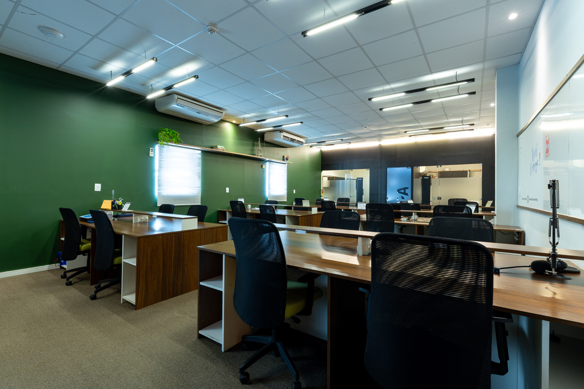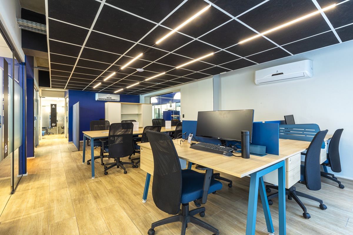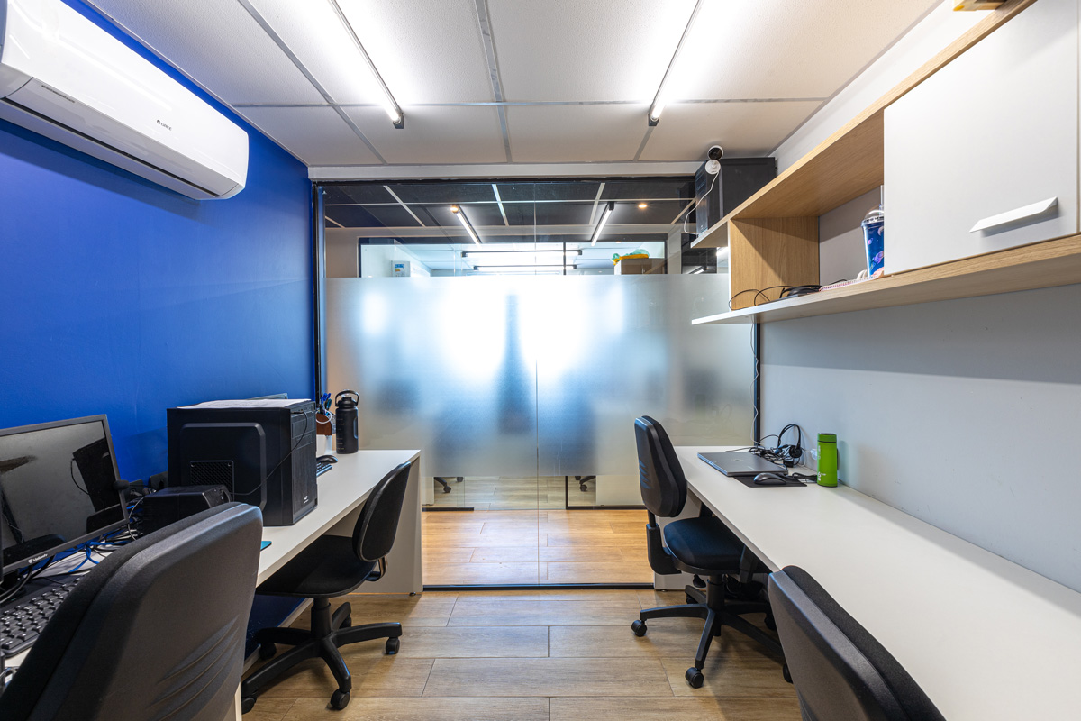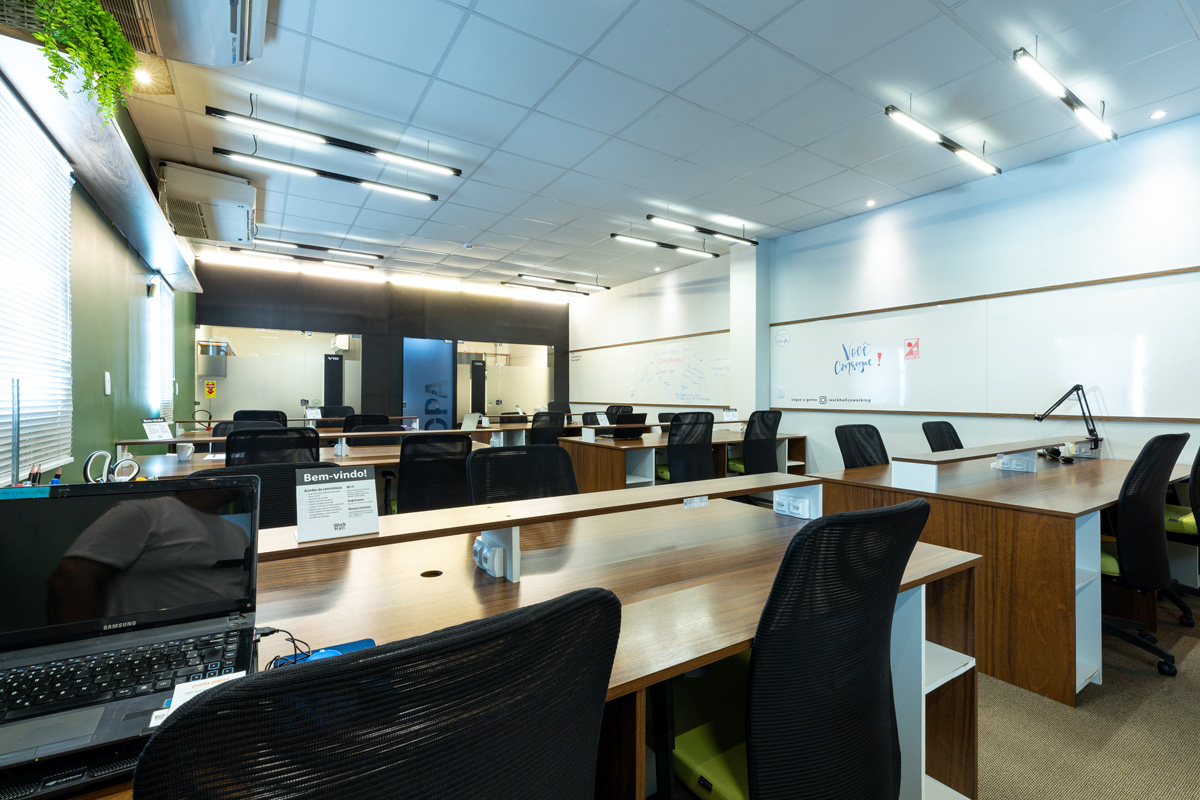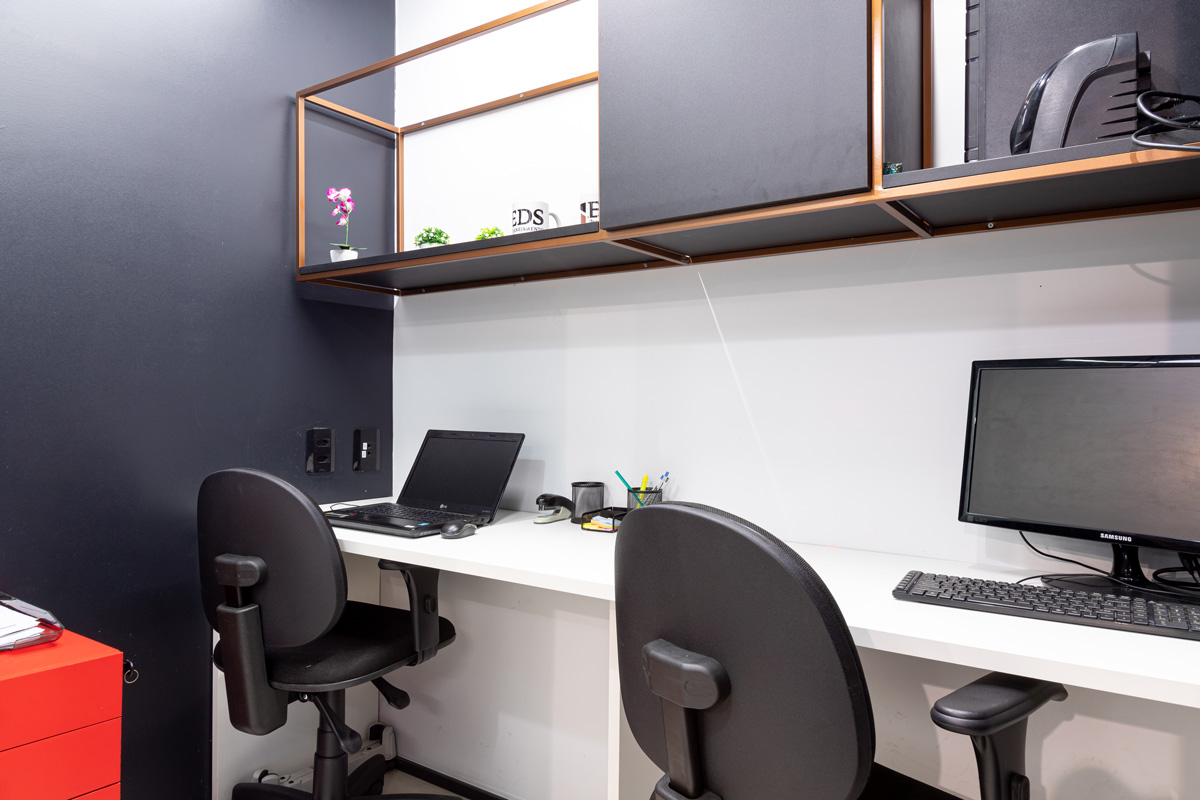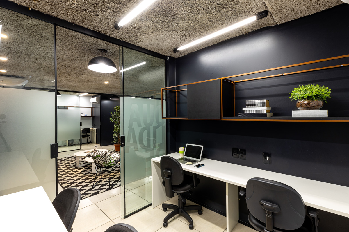 Ambientes planejados com estações de trabalho ergonômicas, cadeiras confortáveis e toda a estrutura que você precisa para trabalhar com conforto e produtividade.