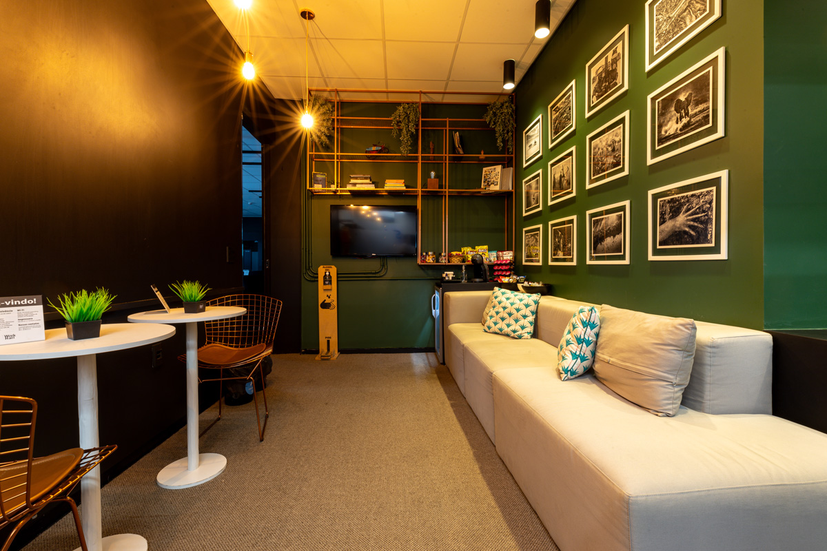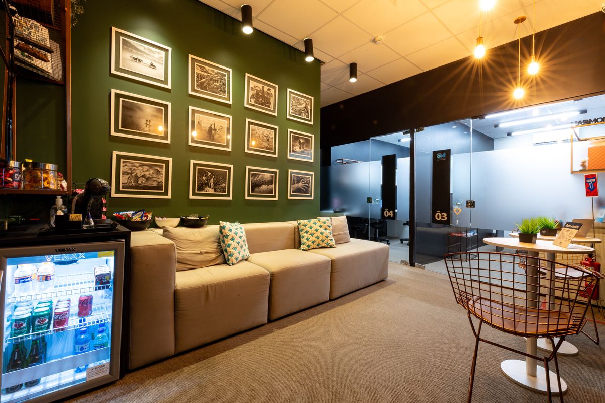 Espaços de convivência acolhedores, ideais para pausas, reuniões informais ou para recarregar as energias com uma boa conversa e um café.